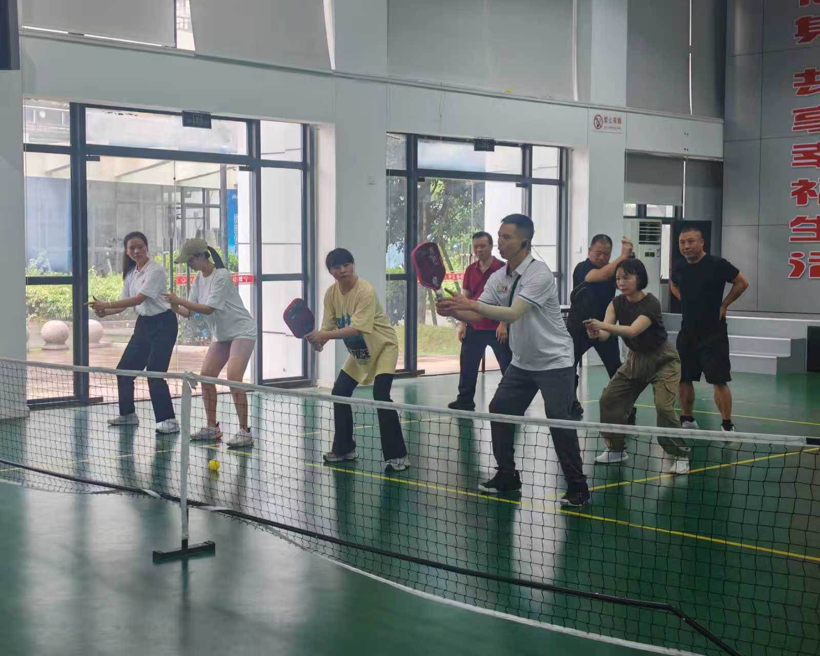教练通过理论讲解与实操演练相结合的方式,系统传授匹克球基本技巧。学员们认真学习握拍姿势、击球角度把控及落点预判等基础内容,在实践中体会到了这项融合网球、羽毛球与乒乓球特点的运动项目所特有的灵活性与策略性,现场活动氛围浓厚。